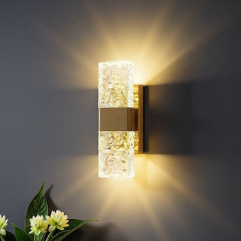 Luz de lujo Modelos de diseño de lujo Patrón de agua Dormitorio Mesita de noche Lámpara de pared de vidrio Fondo de sala de estar cálido Luz de pared de cristal
